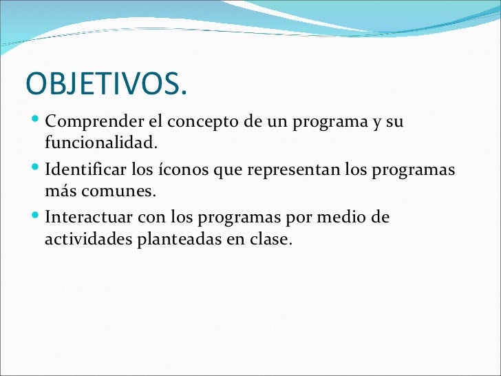OBJETIVOS. Comprender el concepto de un programa y su funcionalidad.